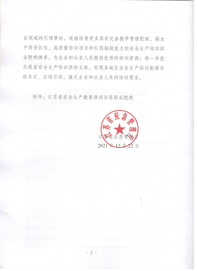 江蘇省應急管理廳關于確定省安全生產(chǎn)教育培訓示范職業(yè)院校的通知