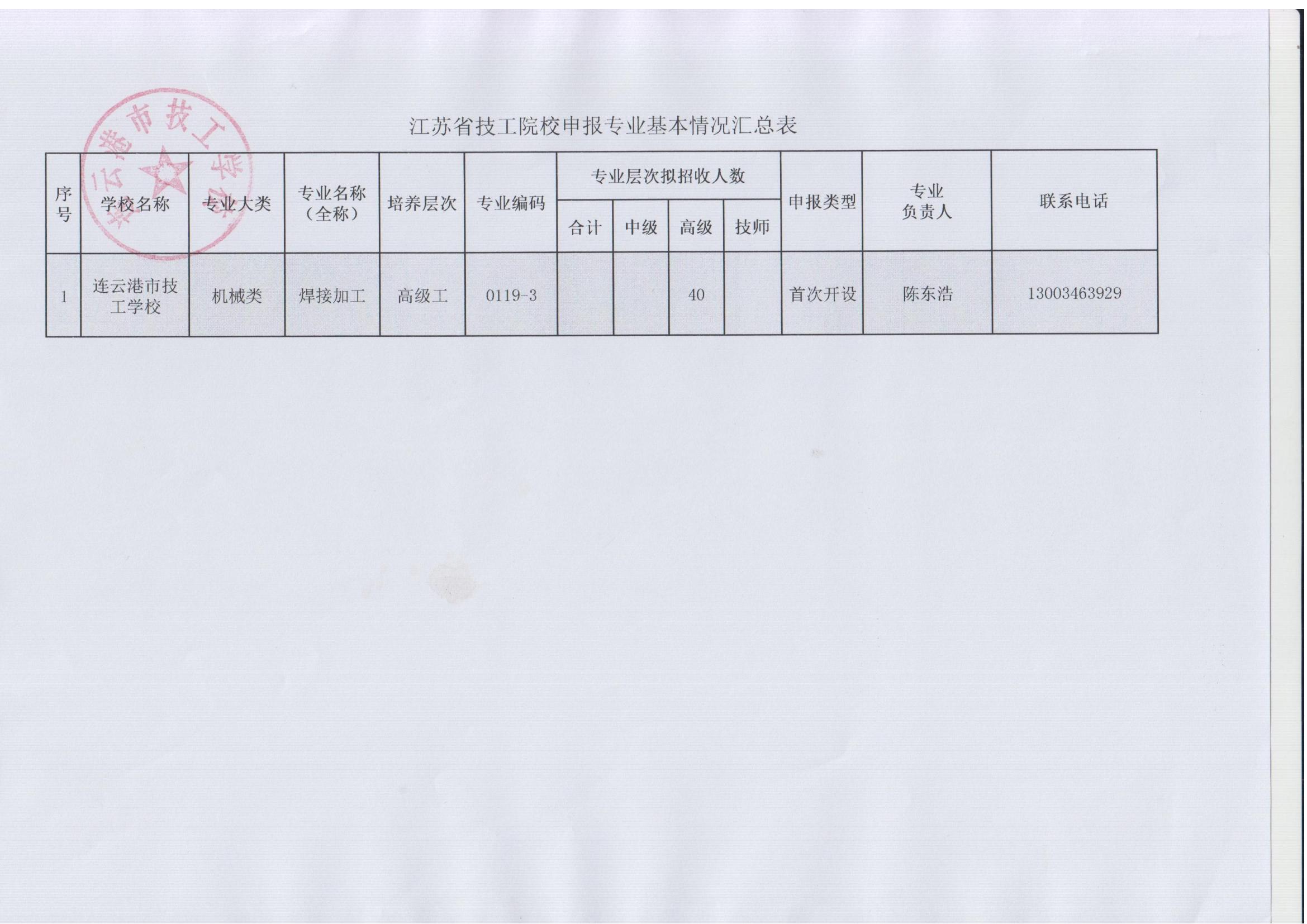 連云港市技工學(xué)校2023年申報新增專業(yè)匯總表公示